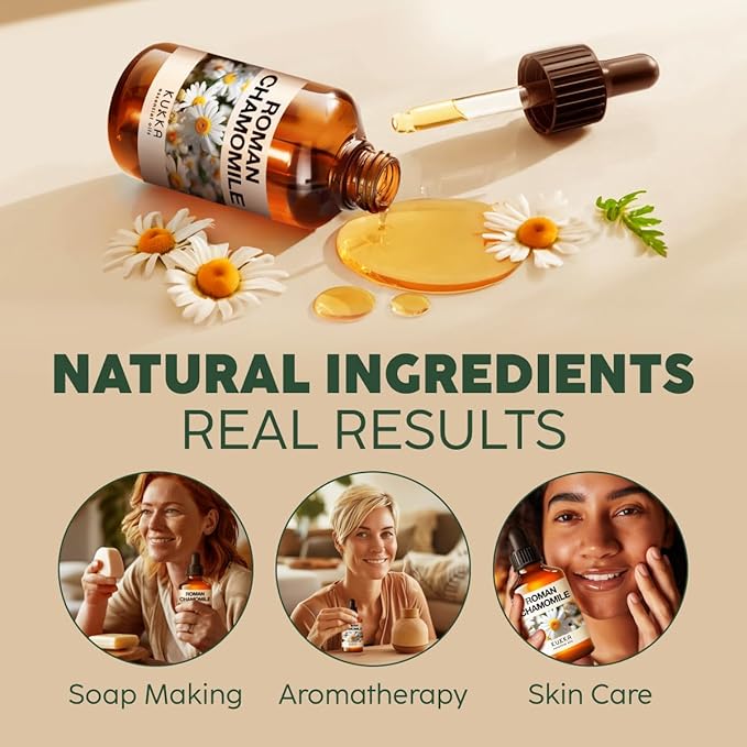 Kukka Roman Chamomile Essential Oil for Relaxation Diffuser, Skin & Body - 4 Fl Oz - 100% Pure Natural, for Aromatherapy & Soap Making Scent DIY