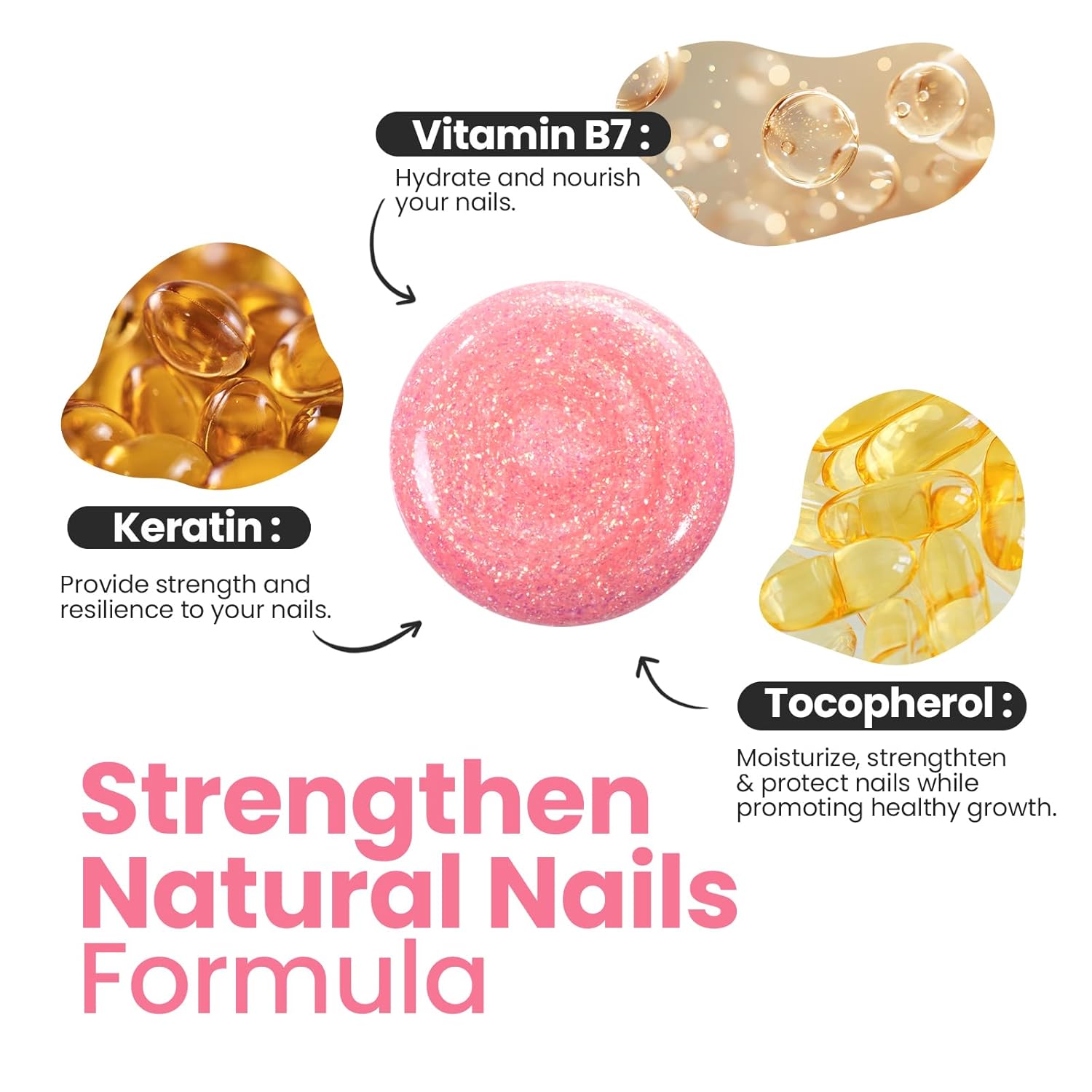 - Gold Pink Glitter Shimmer Nail Polish: This 15ml nail polish features a stunning gold pink hue with a delicate glitter, adding a soft, romantic glow to your nails. The subtle iridescent finish catches light beautifully, perfect for elevating everyday looks or adding a touch of elegance to special occasions. A versatile shade that balances femininity and sophistication.