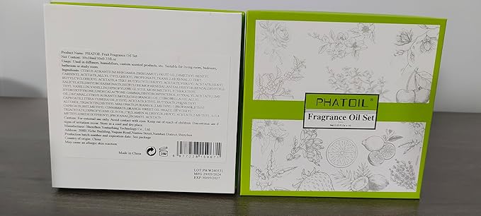 - PHATOIL Fragrance Oil Set: This fruity fragrance oil with a long lasting scent that pampers all your senses. Suitable for any place; For example: office, living room, kitchen, car, yoga studio, etc.
