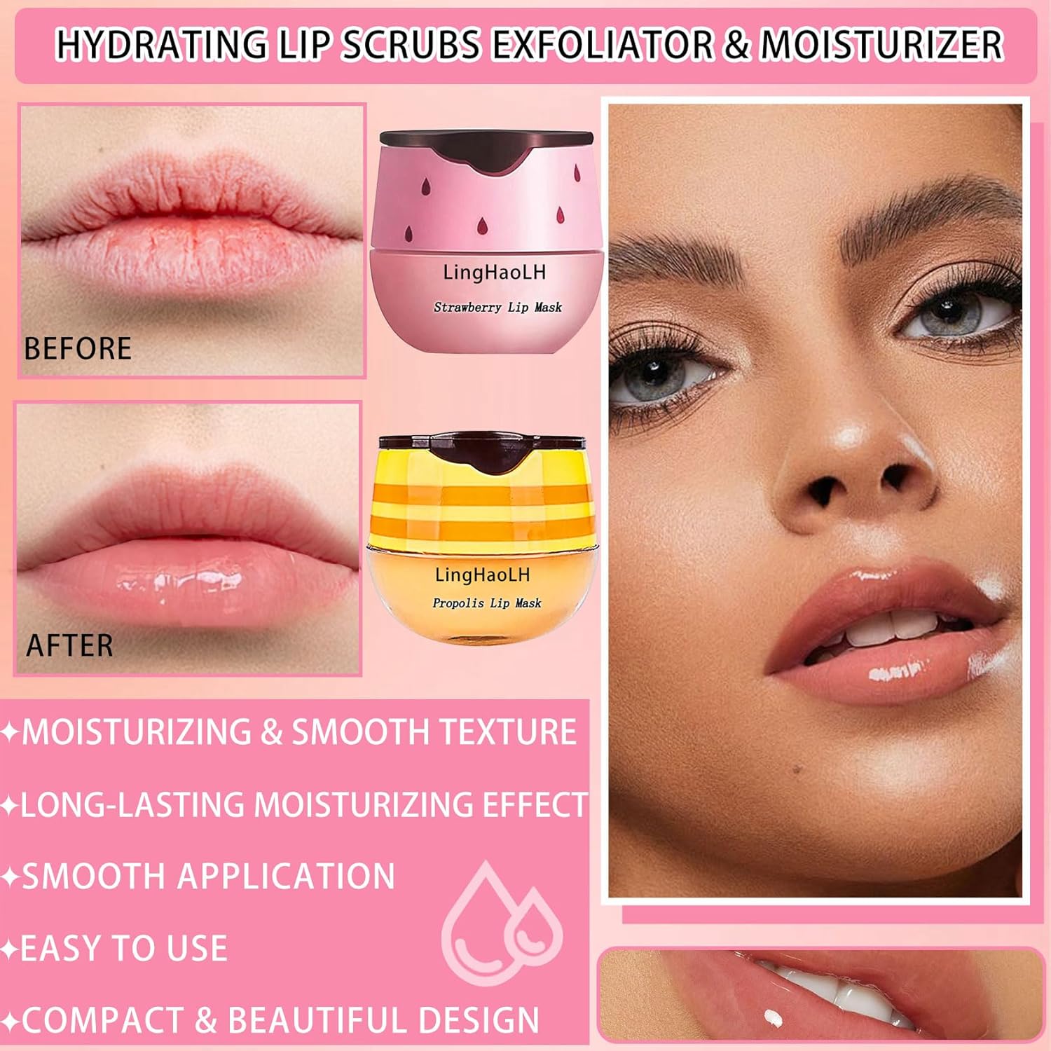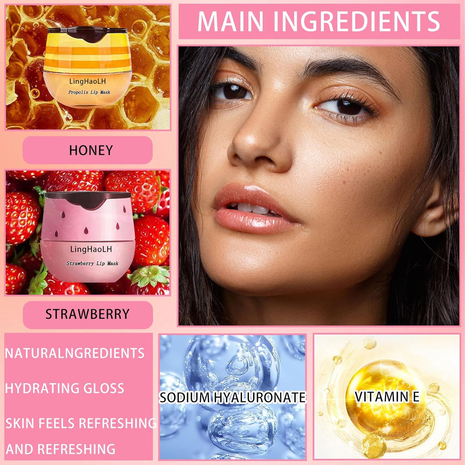 - 🌈【Packaging】The lip masks come in two flavours, honey and strawberry, and each comes with a lip mask stick. The packaging is small and cute, perfect for gifting to your loved ones or friends on birthdays or any other special events.