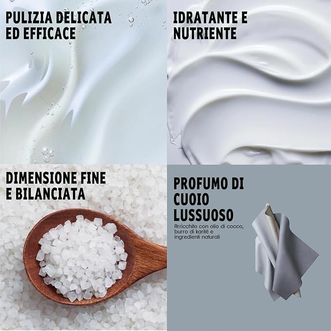 - Care Package for Men: Meticulously selected essentials ensure a thorough and indulgent experience. The body scrub and loofah offer ultimate exfoliation, enhancing the nourishment from our leather-scented products.