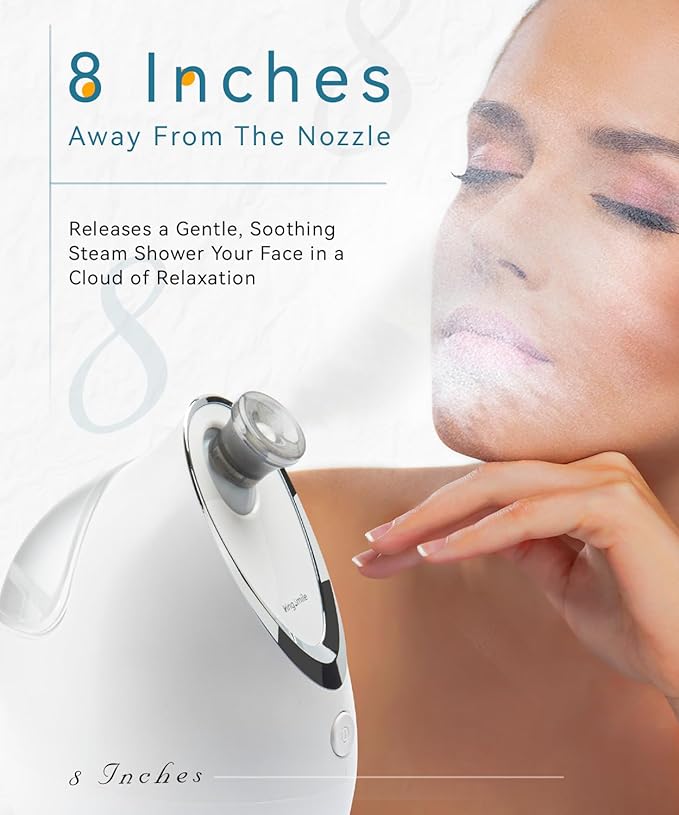 - 【Adjustable Nozzle】 The nozzle of mini facial steamer can be adjusted up and down, no need to stand or hover over the steamer, you can point the steam to directly where you want it, sit comfortably and enjoy slowly. Face steamer heats up very quickly, produces steam only need 10 seconds,The built-in ozone ion device generates a small amount of ozone when steaming the face for facial deep cleaning.A simple on or off button to start your home SPA.Please be sure unplug nanosteamer's power supply after use.