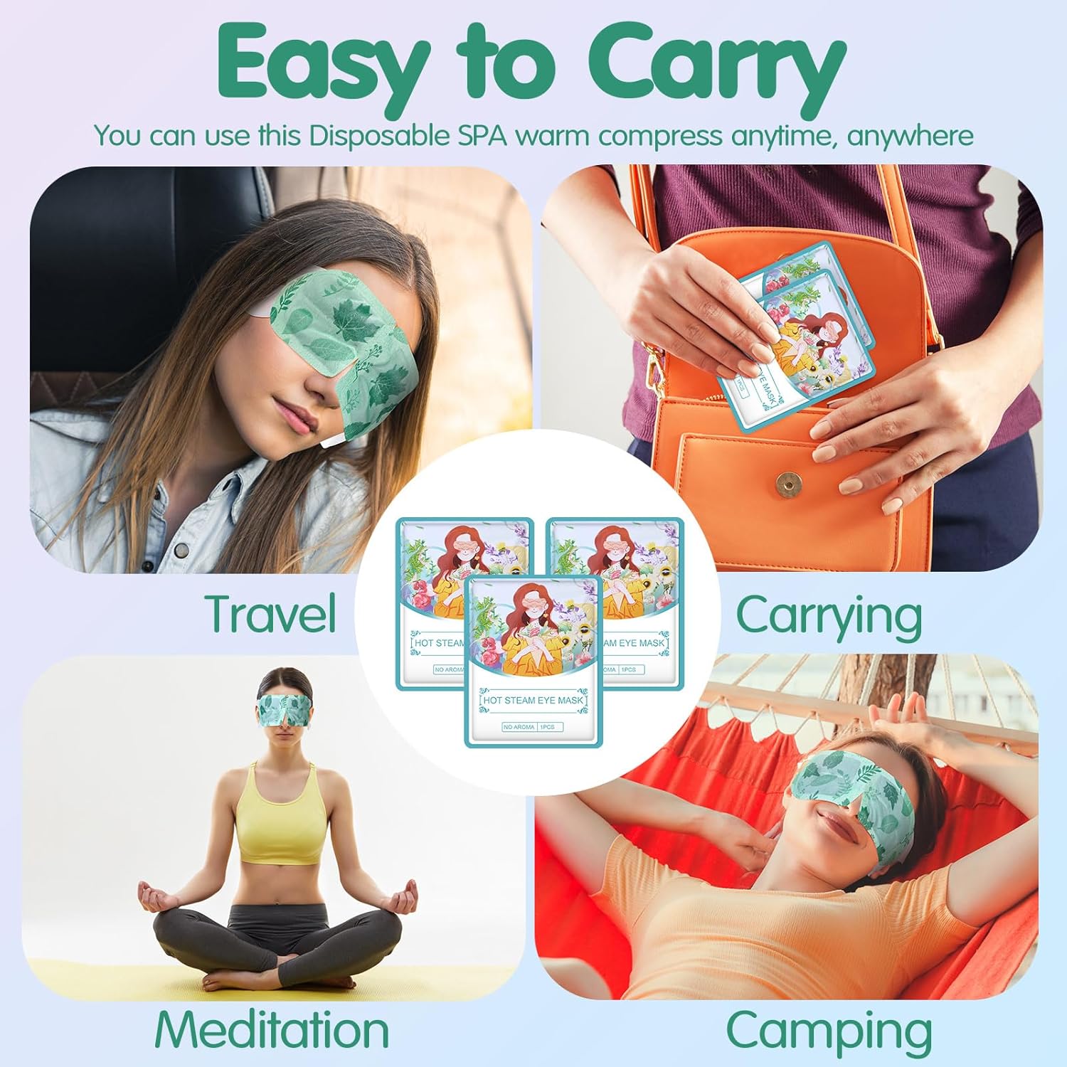 - Easy to Carry: each one of the spa eye mask bulk is self packing and sealed well; It's convenient to carry out; And each heated eye patch is disposable and convenient for you to carry and use when going out; You can use the steam eye mask anytime and anywhere to relieve your eye pressure and enjoy a relaxing moment