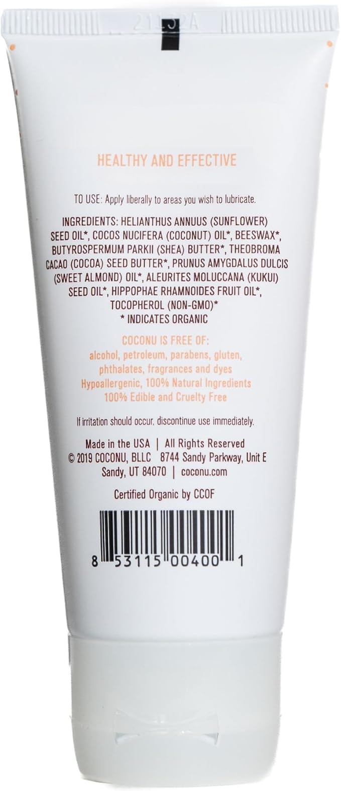 - Simple Ingredients: Helianthus Annuus (Sunflower) Seed Oil*, Cocos Nucifera(Coconut) Oil*, Cera Alba (Beeswax)*, Butyrospermum Parkii (Shea) Butter*, Theobroma Cacao (Cocoa) Seed Butter*, Prunus Amygdalus Dulcis(Sweet Almond) Oil, Aleurites Moluccana (Kukui) Seed Oil*, Hippophae Rhamnoides (Sea Buckthorn) Oil*, Tocopherol (Non-GMO), Monoglycerides, Phytosterol, Squalene *Indicates organic.