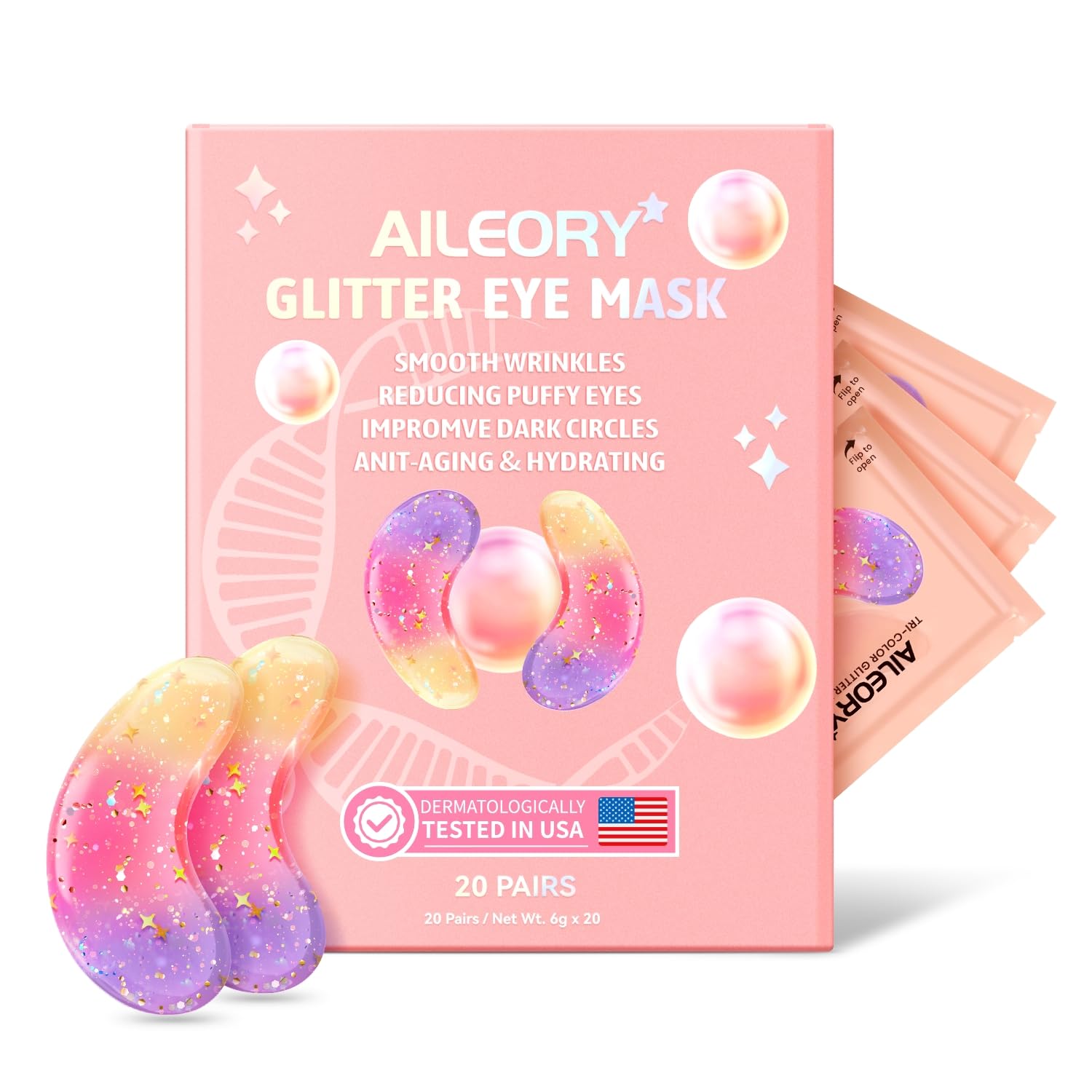 Under Eye Patches (20 Pairs)-New Tri-color Glitter Eye Gel Pads for Dark Circles Puffy Eyes,Under eye Bags,Wrinkles|Natural Collagen Under Eye Mask Patches for Women Teen