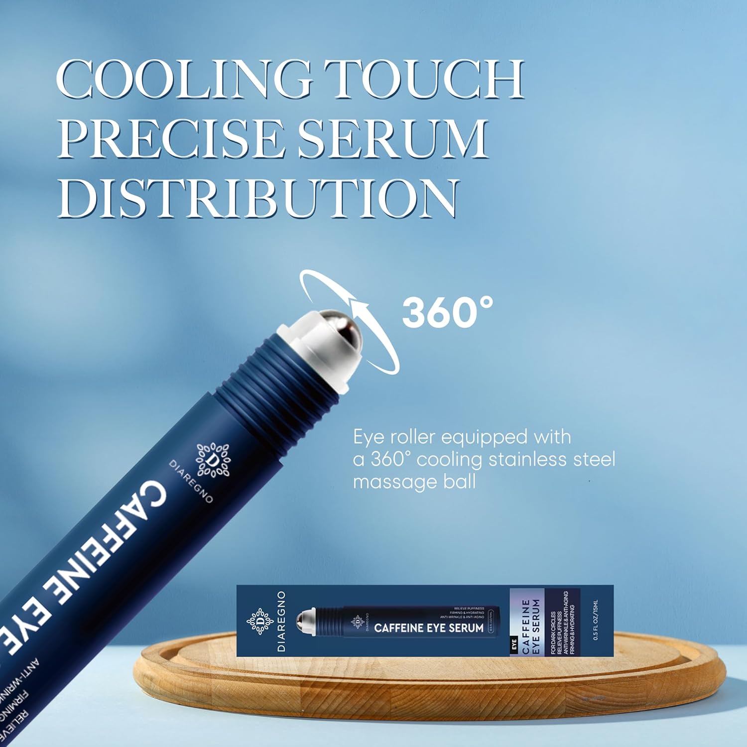 Caffeine eye cream for dark circles: Under eye serum for puffiness – with cooling roller for wrinkles