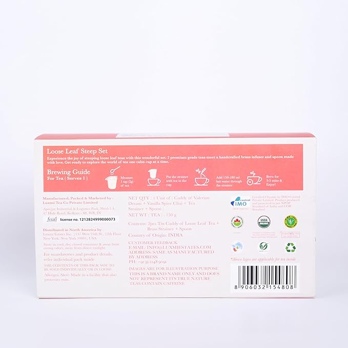 Luxmi Estates - Sleep Tea Set - 2 x 100g Tins of Valerian Dream and Vanilla Spice Chai + 1pc of Spoon and 1pc of Infuser