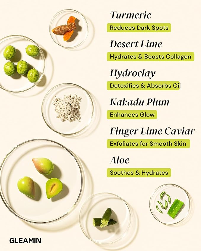 Gleamin Brightening Skincare Bundle – Mask, Serum, Cleanser, Moisturizer & Oil for Dark Spots, Uneven Tone, and Glowing Skin – Complete Vitamin C Skincare Routine