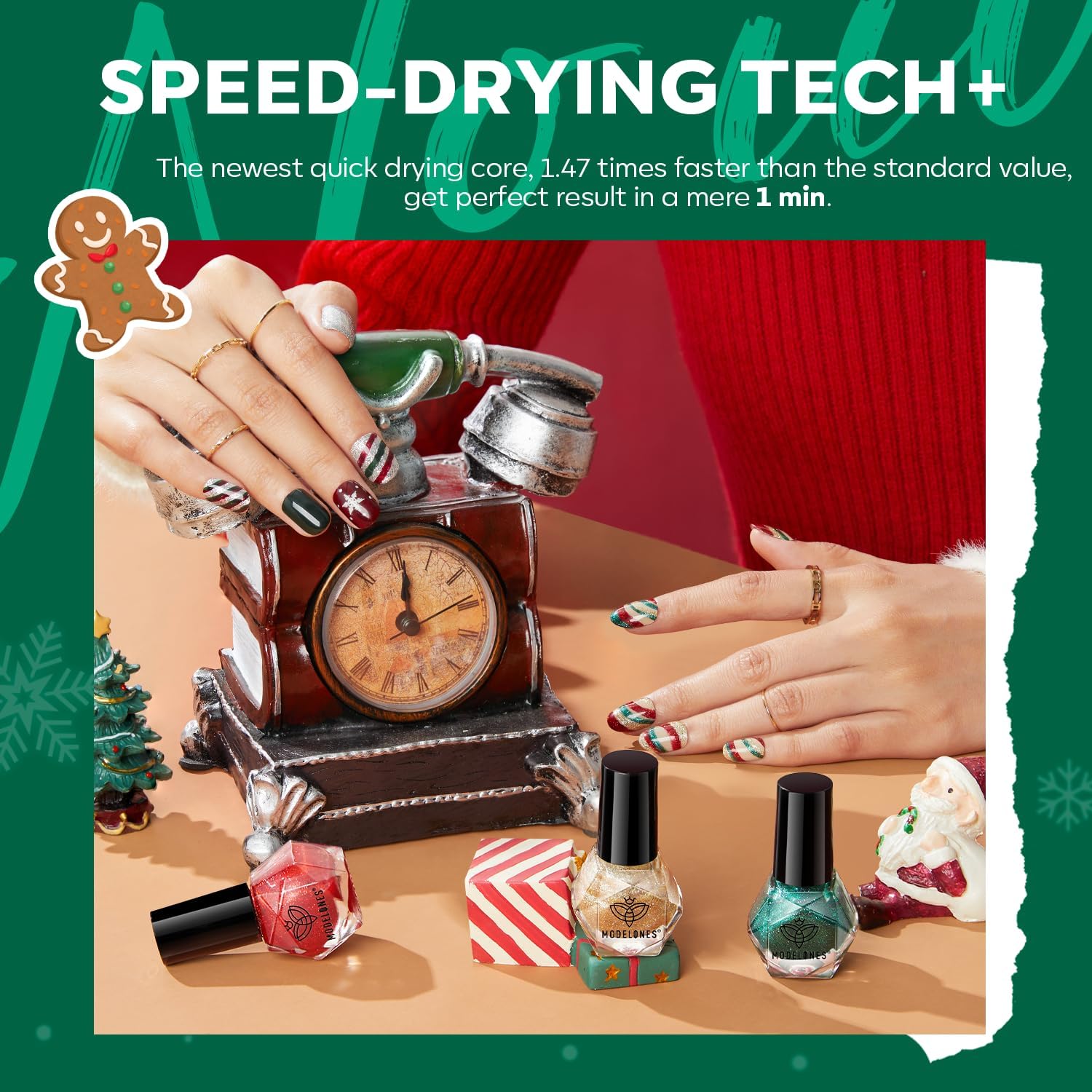 modelones Nail Polish Set 6 Colors Red Green Glitter Mini Nail polish Set Gold Silver Nail Polish Kit Quick Dry Manicure Nail Art Manicure DIY Home Salon Gift for Women Mom