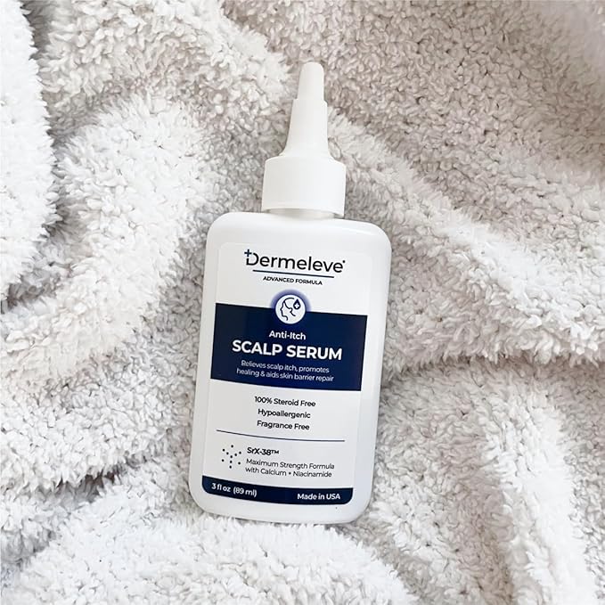 - PROMOTES HEALING & SKIN BARRIER REPAIR with Mineral Salts, Calcium, and Niacinamide to drastically reduce the burning, itching pain in your scalp that keeps you up at night. Dermeleve scalp moisturizer provides itchy scalp relief and helps prevent reoccuring dryness.