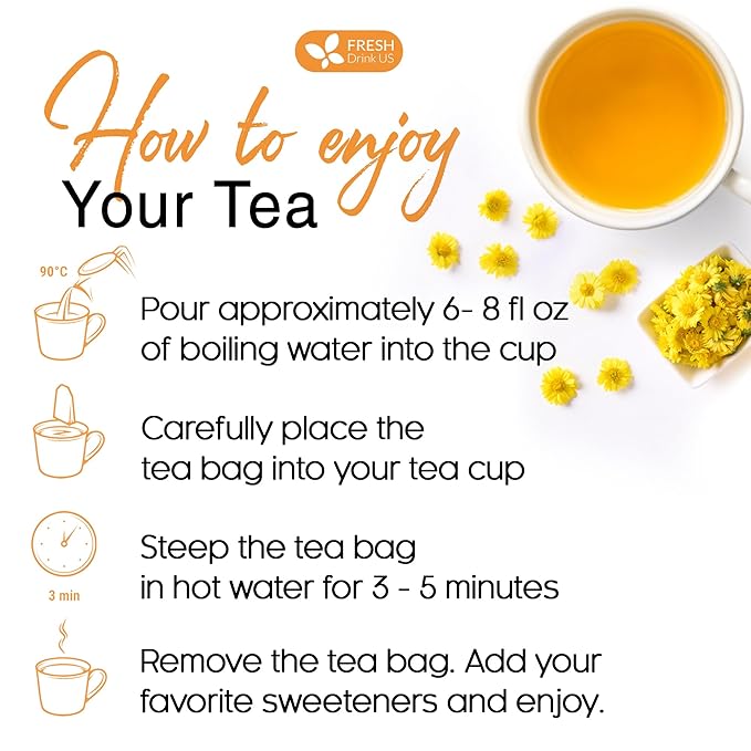 - ☘️ CONVENIENCE & ENJOYMENT: Chrysanthemum tea bags are perfect for busy lifestyles. Whether you're at home, at work, or traveling, you can easily enjoy the benefits and flavors of the tea without the need for loose herbs or complicated brewing methods. It is often sweetened with honey, sugar, or other sweeteners like Stevia leaves.