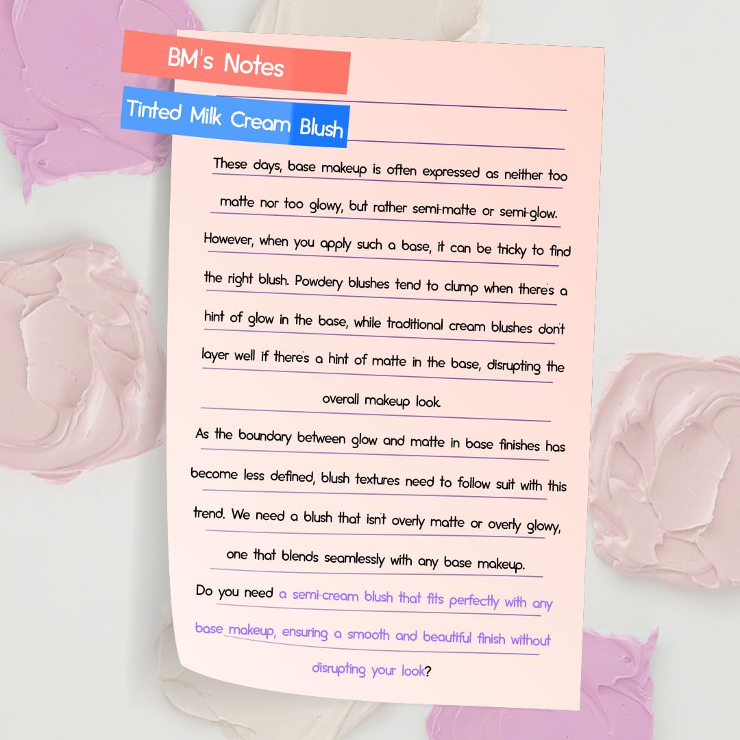 HOLIKA HOLIKA Colored Milk Cream Blush 03 HEY BUNNY: Glowing, Natural Makeup, Glossy Finish, Soft, Creamy Dough like texture, Shimmer, Radiant, Plumping, Cheek, Lightweight, Clean, Buildable