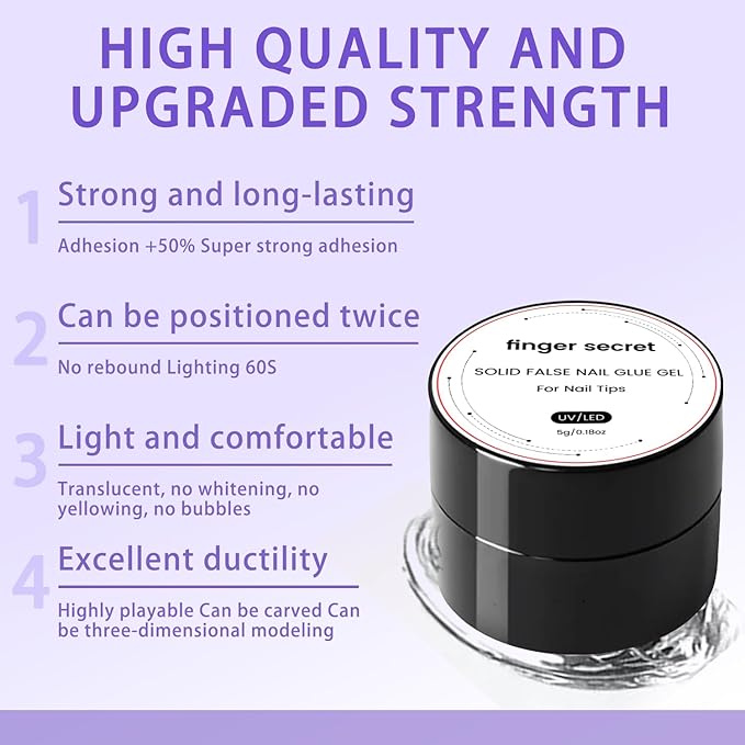 Gel Nail Glue for Press Ons 2 FL.OZ Spray Nail Glue Remover for Glue on Nails Solid Gel Glue Nail,with Cuticle Pusher and UV Mini Nail Lamp for Flase Nail Tips Press on Nail