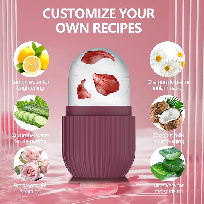 - Customize Preferences - Facial ice roller can enhance the skin care effect as per your creativity and customized formula according to your specific skin needs, such as lemonade for whitening, and coconut for improving skin. Even you can use a juicer to squeeze them into juice, then add water, essential oils, and roses to the ice tray.