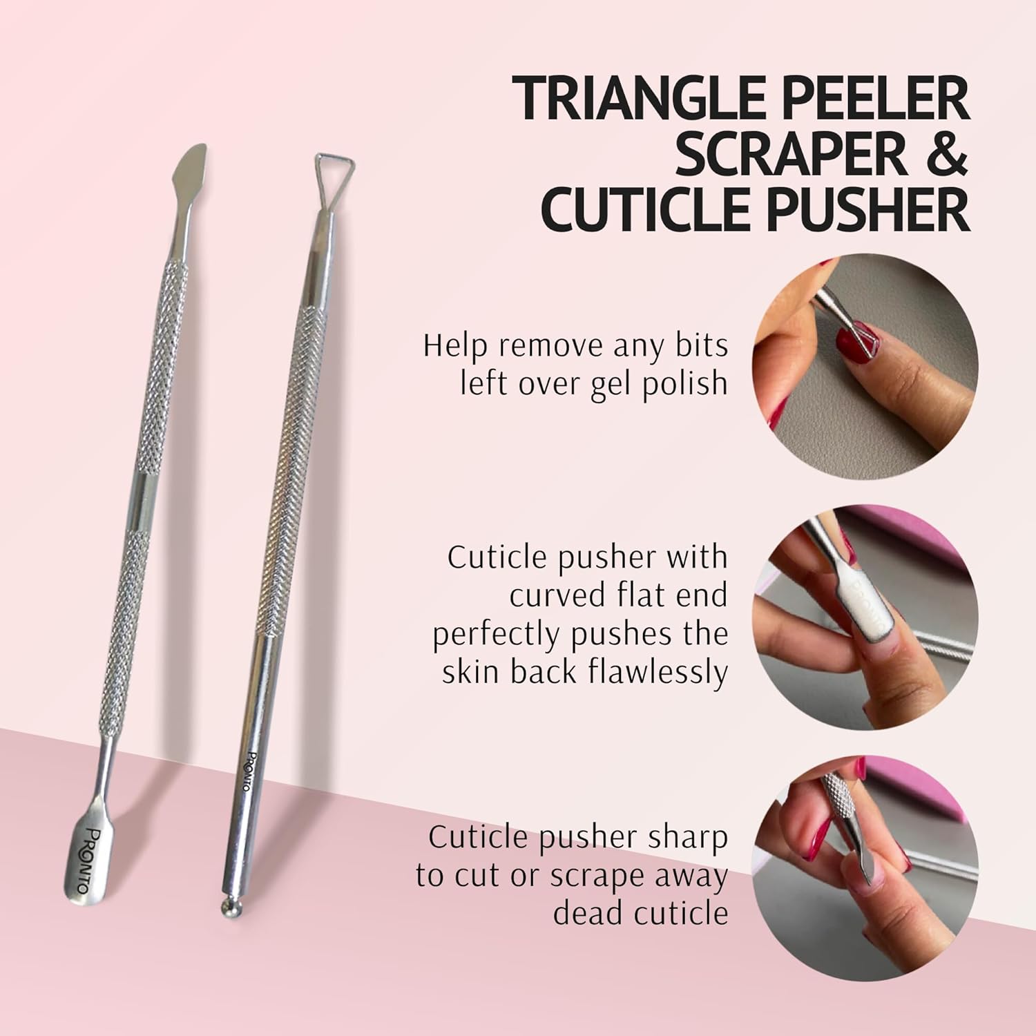 - ALL-IN-ONE MANICURE KIT: Our Acrylic nail remover kit comes with Pronto Acetone 100 Percent and Manicure Kit includes 2* Nail File, 2*Nail Buffers, 1*Cuticle Pusher & 1*Nail Scraper for a professional finish. Perfect for salon-like results!