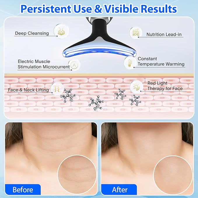 - Ergonomic design:Stylish appearance, ergonomic design, perfect fit for face, neck, hands, legs, etc. Consistent use of this face lift device can greatly improve neck wrinkles