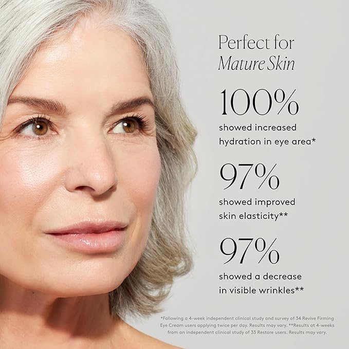 • PERFECT FOR: Visible fine lines, crow’s feet, uneven-looking tone. Revive Firming Eye Cream is clinically shown to fade visible spots and fine lines around the eye area. Restore Ultra-Rich Night Cream is clinically shown to reveal firm-looking skin. Perfect for mature, menopausal skin, this duo delivers a smooth as effectively as Retinol - without the harshness.