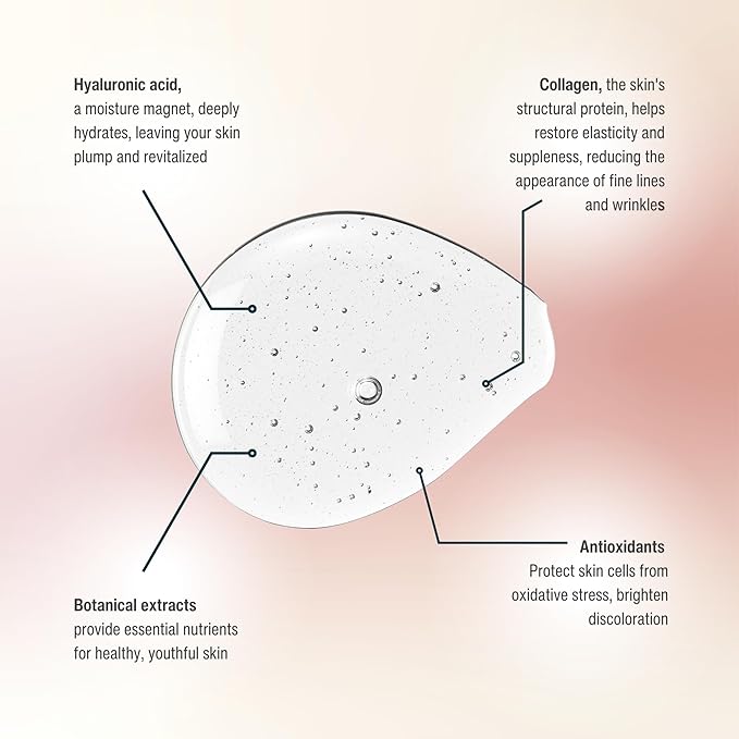 - Non-greasy formula penetrates deeply with a potent blend of active ingredients, including collagen, hyaluronic acid, and botanical extracts, deeply hydrating your skin while protecting it from environmental stressors.