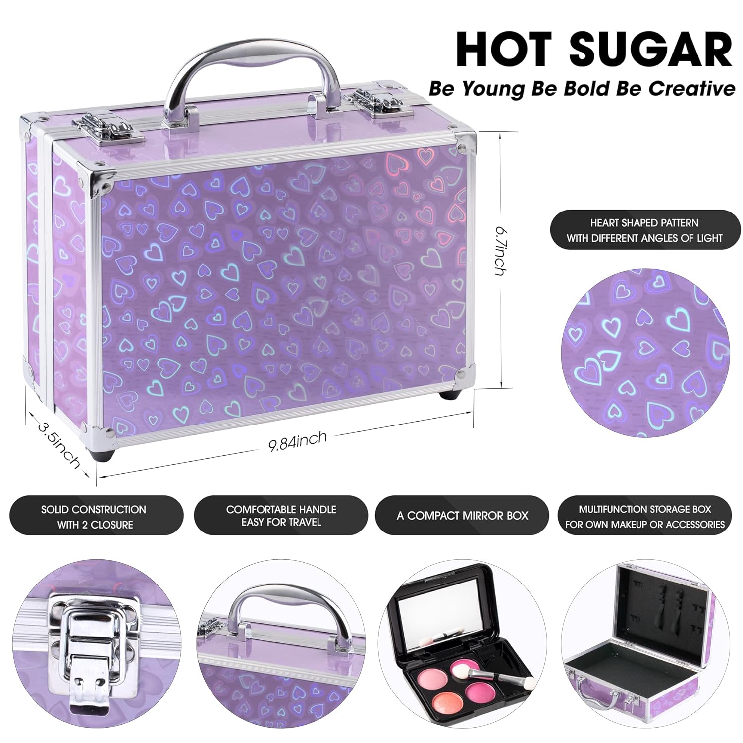 - Chic Sturdy Aluminum Organizer: The makeup train case, which is durable and spacious, is made with reinforced aluminum frames for extra durability and protective. Portable Size: 9.84 x 6.7 x 3.54 inches