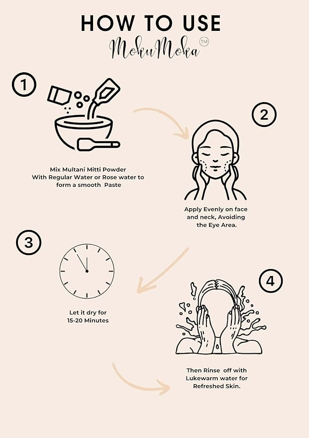 - ☑ Multani Mitti Powder is a completely natural clay mask for facial care. This face mask is 100% vegan and organic, made entirely from pure clay. Suitable for both face and hair applications, it is an excellent solution for clearing pimples and blackheads.