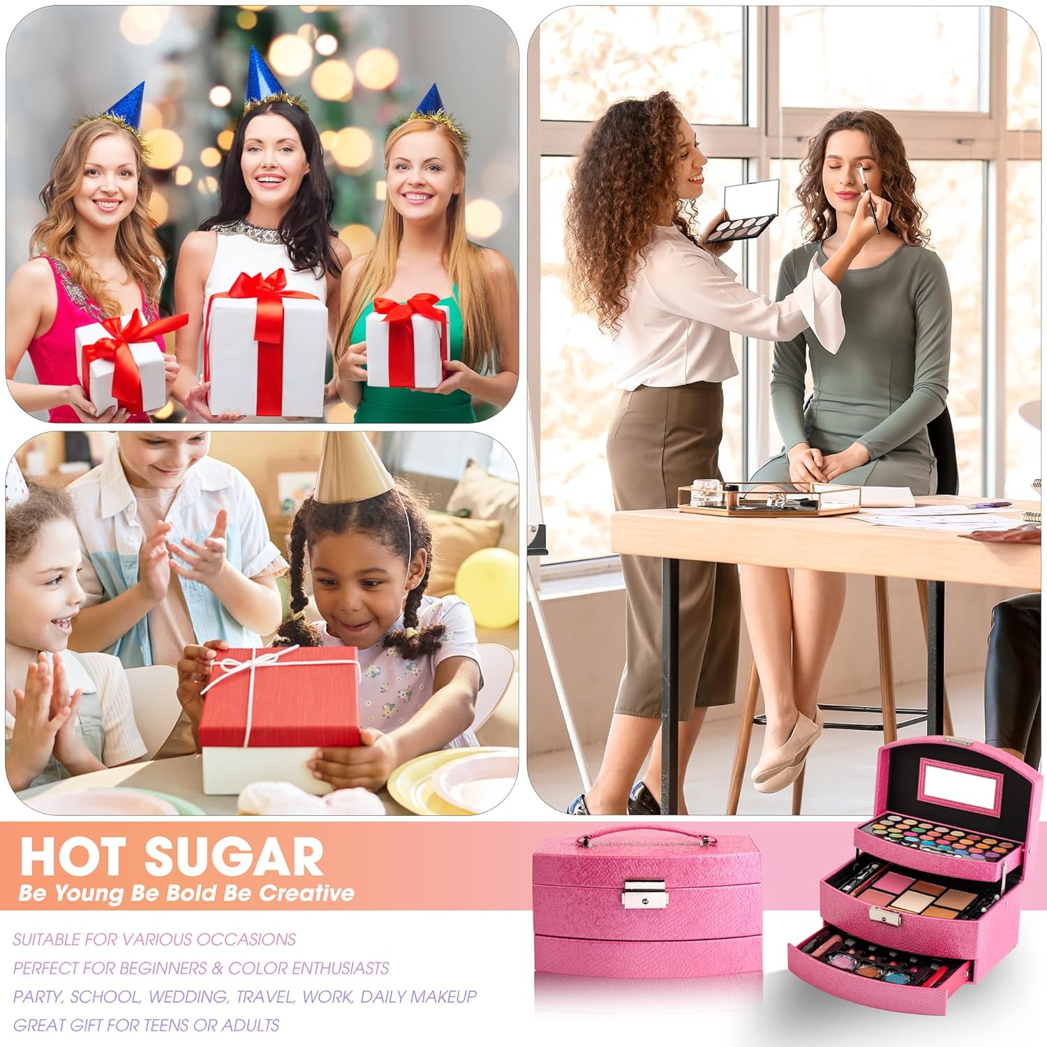 - IDEAL GIFT FOR LOVED ONES: This beautiful train case with makeup and tools is an excellent present choice for your teen daughter, granddaughter, niece, mom, girlfriend or wife for Birthday, holidays like Christmas, Halloween, Women’s Day, Mothers’ Day and wedding anniversary.
