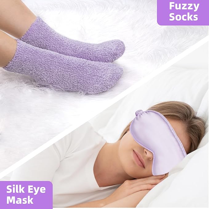 - Pamper Her with a Touch of Luxury: Our self care spa gift set pampers her from head to toe with a premium silk eye mask for restful sleep, luscious bath salts for a fragrant soak, a captivating diamond bar soap, soothing bath bomb, a scented candle for ambiance, and fuzzy socks for comfort. It's an all-encompassing luxury experience.