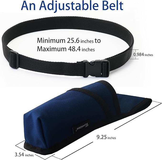 - 2、Waist pack size: 9.25 inches long and 3.54 inches wide. Optional adjustable belt width 0.984 inches (minimum 25.6 inches to maximum 48.4 inches), easy to clean, you are advised to wash by hand.