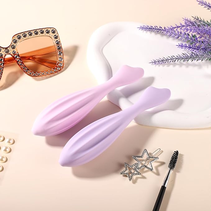 2pcs Face Massage Rollers, 6.99x1.1x0.43in Silicone Facial Rollers Reliable Face Massager Tool Face Skin Care Face Guasha Stick Body Gua Sha Relax for Women(Pink,Purple)
