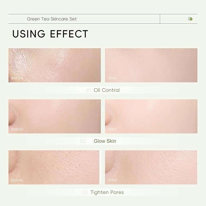 - 【Green Tea Skin Care Coreano Kit】: This face routine set for women includes your favorite skincare essentials: facial cleanser, toner, face serum, eye cream, face cream. Green tea skincare kits can effectively improve skin dullness and dryness, reduce wrinkles, fine lines, and acne marks, tighten the skin, shrink pores, and keep hydrated, plump, and youthful for a long time, deeply nourish your skin
