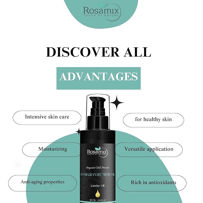 - Intensive Skincare: Pomegranate seed oil is an excellent emollient that leaves your skin smooth and well-nourished.