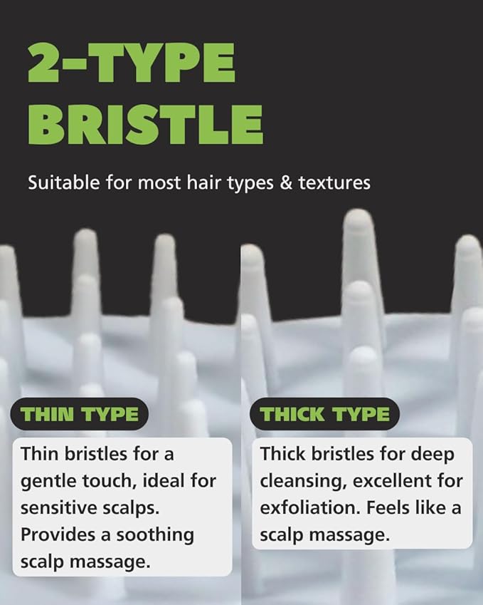 - 2-in-1 Scalp Massager Set – Includes two scalp scrubbers with thick and thin bristles for deep cleansing and an invigorating massage experience.