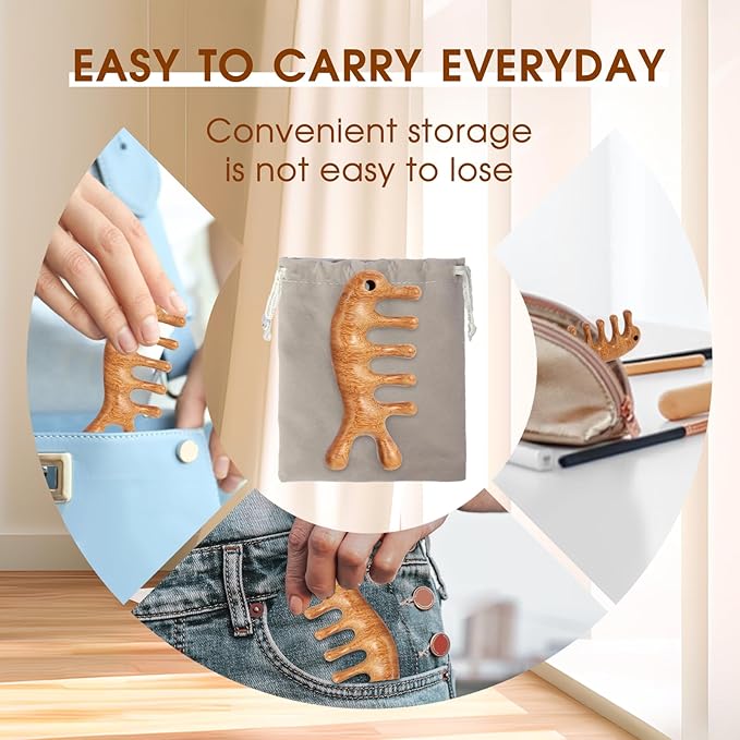- Antistatic Wooden comb: Sandalwood is rich in natural oils that can nourish your hair. Combing scalp with wood head massager everyday before bedtime and after waking up can effectively reduce hair loss. Combing hair and massage your scalp with natural wooden hair massager can help calm your mind, relieve stress and fatigue, and improve hair growth. It takes better care of your hair and reduce static and frizz