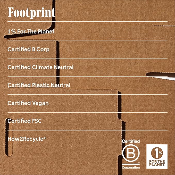 - FOOTPRINT: 100% Bio-Resin (HDPE) Bottle with mixed material pump. Free of BPA, BFA, Phthalates. The carton and insert are made with FSC-Certified, PCR Kraft Board. Certified B Corp. Certified Climate Neutral. Certified Plastic Neutral. 1% For The Planet Member.
