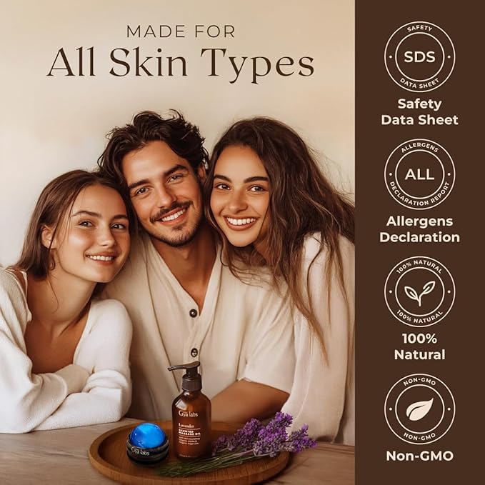Gya Labs Lavender Relaxation Massage Oil - 8.45 Fl Oz - with Massage Roller Ball - Fast Absorbing 100% Pure Natural Blend of Spa Quality Oils for Skin, Muscle Relaxing - Calming, Aromatic, Self-Care