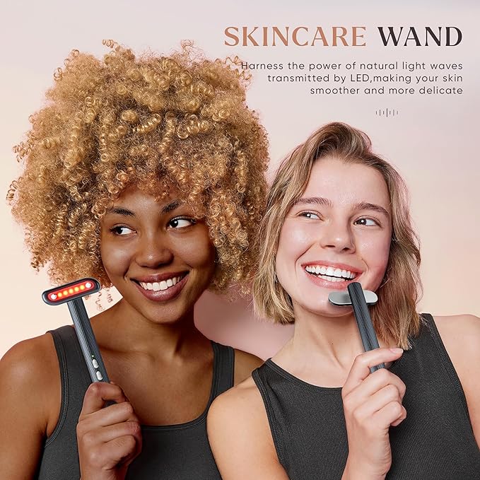 - Multifunctional LED Light Therapy Wand: Red light therapy stick penetrates deeply to nourish the skin, high frequency vibration promptes the introduction of essence, hot compress smoothes and promotes the absorption of essence makes skin firmer.