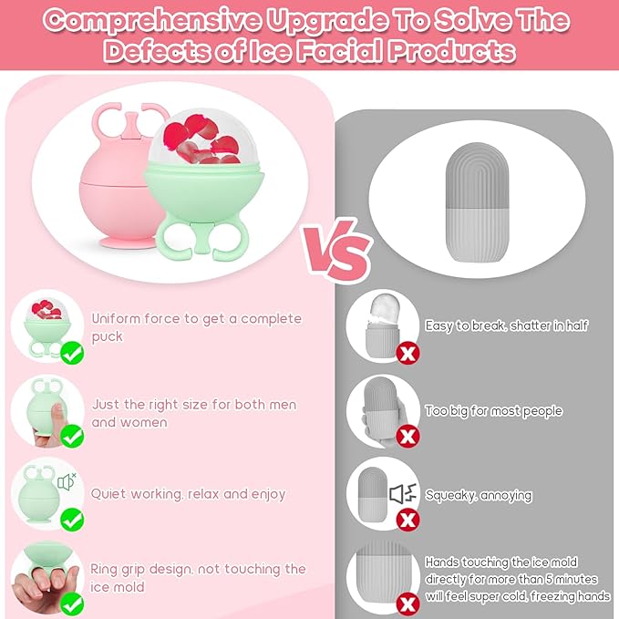 - HIGH QUALITY & MONEY SAVING: Ice roller for face made of high-quality silicone material, Reusable, durable, BPA free, face massager tool is made of food grade silicone. Pack of 2 for alternate use, which can save you money. DIY beauty recipes according to skin needs, lemon water whitening, green tea anti-inflammatory, cucumber water reduces swelling, mint leaves refreshing, coconut juice improves skin, have a spa experience at home. ice face roller ice globes for face ice for face ice facial