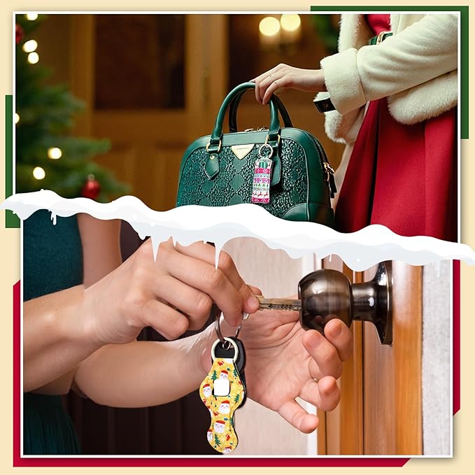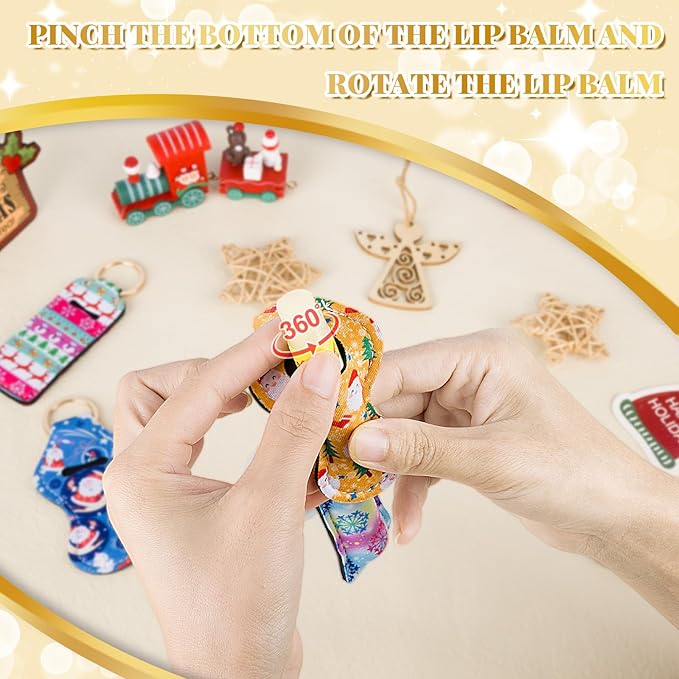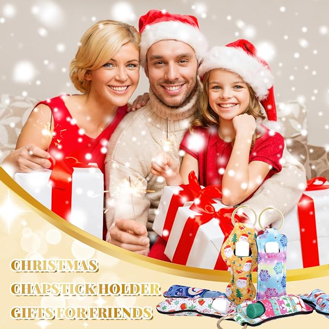Chapstick Holder Keychain, Lip Balm Holder Sleeve Pouch with Clip On, Lip Gloss Lipstick Holder Keychain Gift for Friends Women Girls Boys and Man (Christmas Style, 6pcs)
