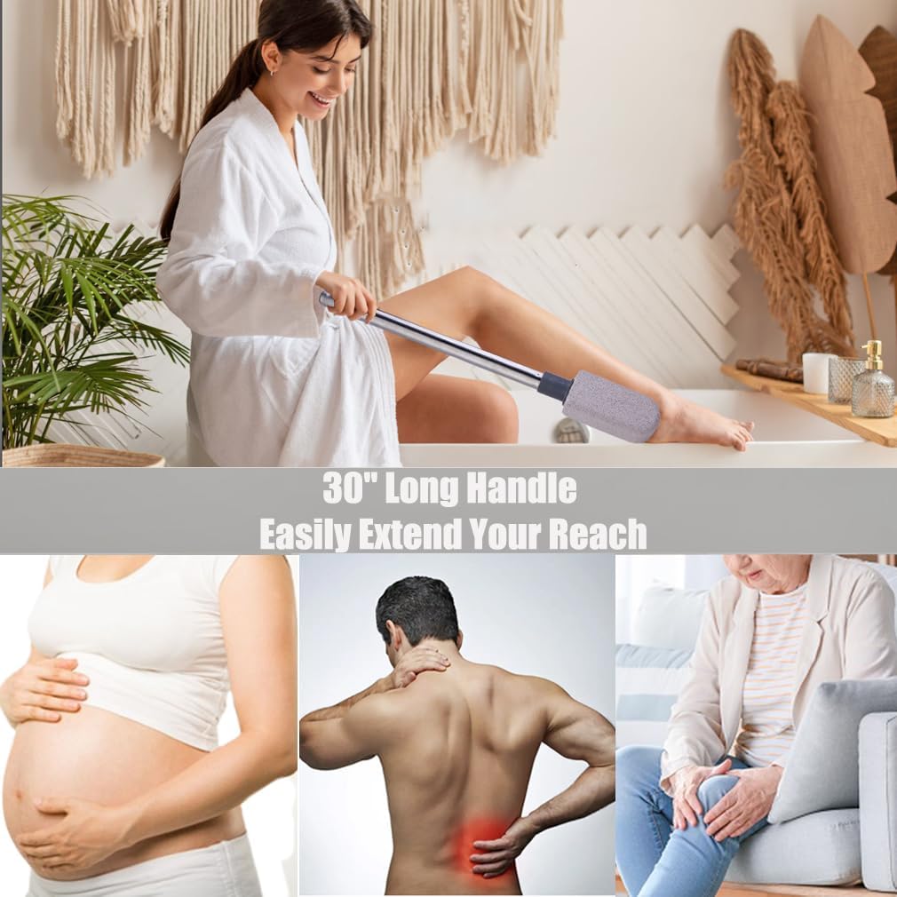 - 【30" Long Handle】Our Pumice Stone Designed with 30" Long Handle to help you effectively reach and clean hard-to-access areas on feet, ends awkward bending to clean your feet in the shower. Foot pumice is suitable for mother-to-be, senior citizens and those with limited mobility