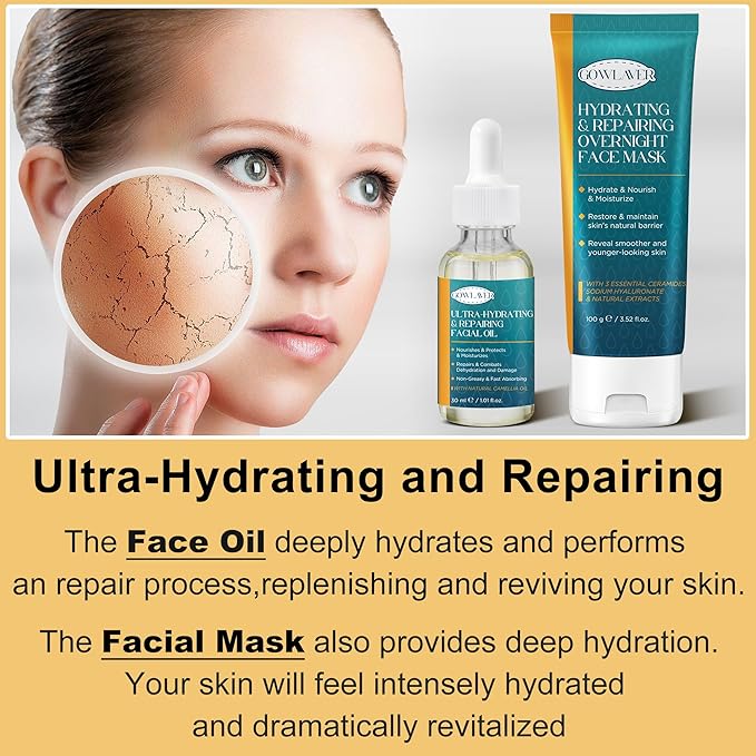 - Ultra-Hydrating and Repairing: This Face Oil deeply hydrates and repairs skin barrier, replenishing and reviving your skin—combating Dehydration & Dryness, reducing Fine Lines & Wrinkles, enhancing Lifting & Firming, and improving Uneven Skin Tone. Made with pure Camellia Japonica Seed Oil and Hippophae Rhamnoides Seed Oil only, with NO other additives,The gentlest for dry skin,even for teens 10-12,skin care for teens 14-16 girls.The Facial Mask also provides deep hydration