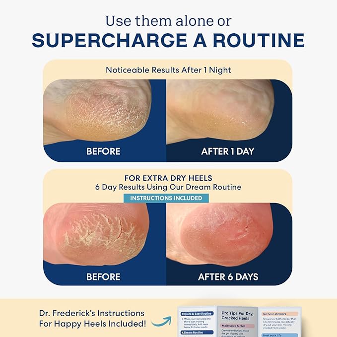 - Visible Results Fast: Dr. Frederick’s Original Fuzzy Heel Socks are expertly developed to transform dry, rough feet into soft, smooth soles. Most users see a difference after just one night, with best results achieved after one week of consistent use.