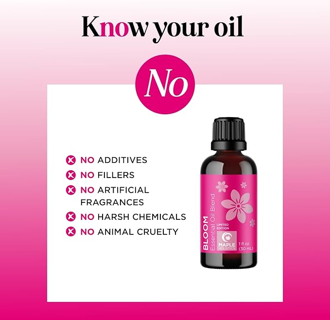 - Relaxing Scent - We use six floral essential oils in our Bloom blend because we love the refreshing and clean scent of these essential oil blends for diffuser and other machines to uplift your space