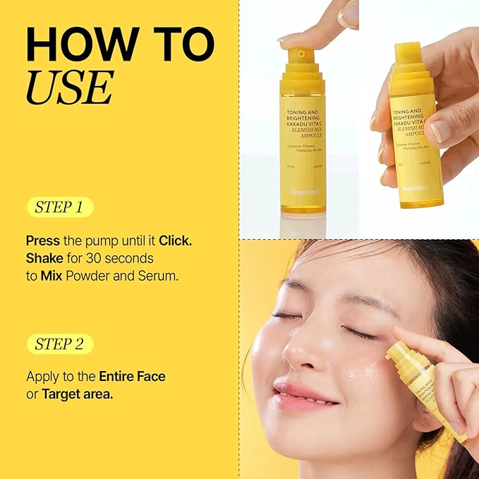 - HOW TO USE: ① Press the pump to open the capsule inside. ② Shake well to mix the vitamin c powder with the serum. *Store in the refrigerator to preserve the freshness.