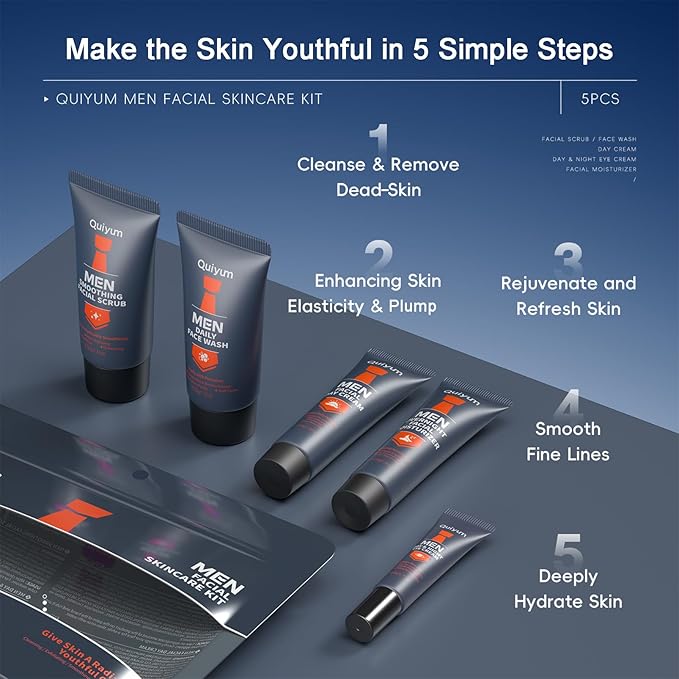 - 【Enhance Your Handsome】- This skin care set for men is designed for men of all ages to help them regain their handsomeness. The men face care kit includes Men Face Wash, Men Face Scrub, Men's Evening Moisturizer & Day Cream, Eye Cream, 5-in-1 sets that’s great as a starter pack for you or a gift for someone else.