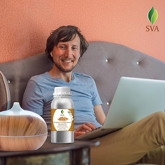 - Premium Quality Organic Frankincense Serrata Essential Oil: SVA Frankincense Serrata Oil 16 oz is an essential oil and is obtained by steam distillation extraction of Boswellia Serrata resin. Our Frankincense Serrata oil is free of preservatives. It is not tested on Animals. We care for you!