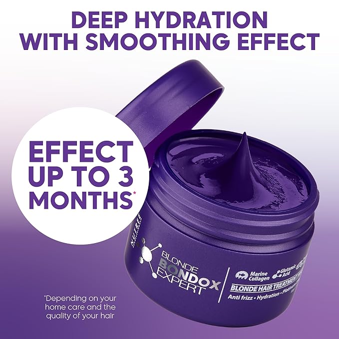 - BLONDE BONDOX PURPLE MASK FOR BLONDE HAIR WILL PROVIDE INCREDIBLE RESULTS AFTER FIRST USE. It is the most sought-after treatment product for hair. It promotes perfect reconstruction, cell rejuvenation, & deep multilevel restoration. The mask combines a powerful trio—a rich working composition, a clear & simple mechanism of action, & a guaranteed result. It contributes to the complete rehabilitation of the hair from inside and outside, regardless of the previous state of the structure.