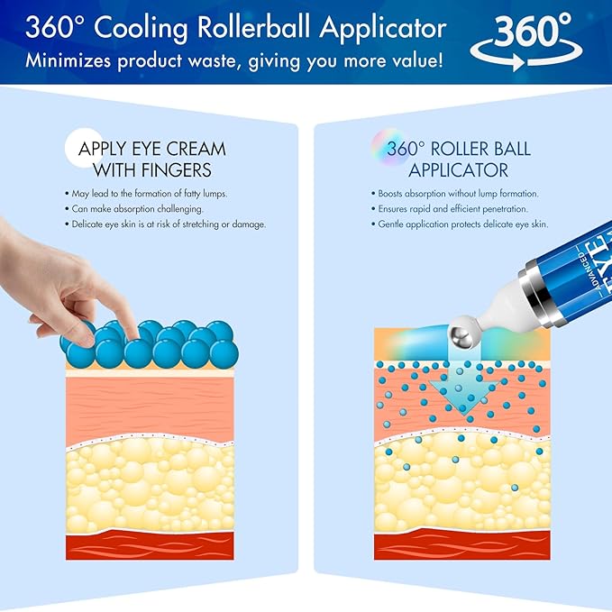 - 🌸EASY TO USE - Gently press to dispense an appropriate amount of eye serum, apply evenly around the eye area with the roller ball, massaging in circular motions until fully absorbed. Use every morning and evening for best results.