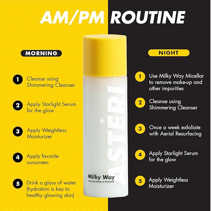 - Kick off this skincare routine set by softly removing makeup with our Milky Way Micellar Make-Up Remover. Then, use the Shimmering Cleanser for a thorough cleanse. Moisturize with the Weightless Moisturizer to ensure deep, lasting hydration.