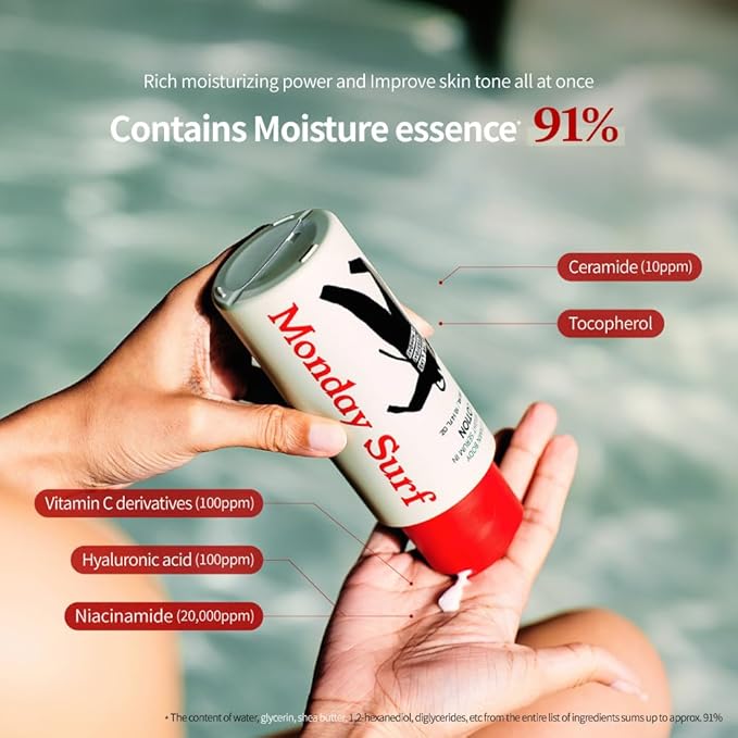 - [DIRECTION FOR USE] Use this mild and soft lotion over body to help relieve and restore dehydrated skin; start by cleansing skin with MondaySurf Vitamin Body Wash for hydrated and glowing skin.