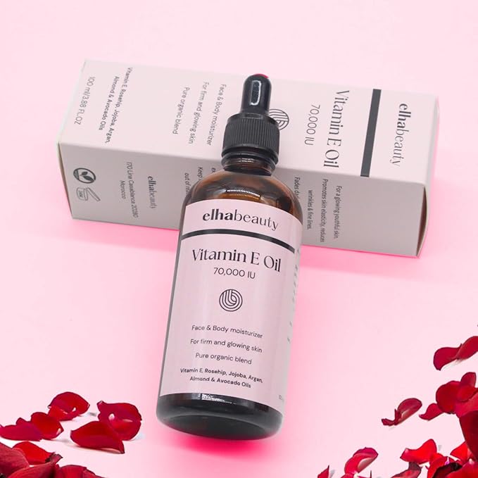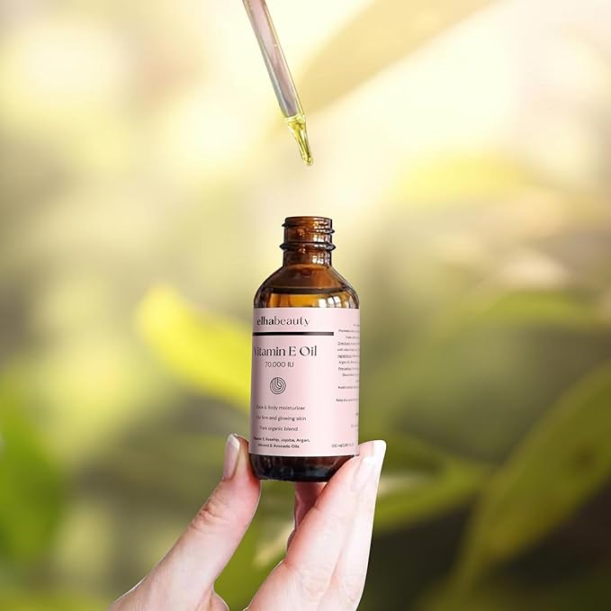 Elhabeauty Vitamin E Oil 70,000 IU, Face & Body Moisturizer, with Rosehip, Jojoba, Almond and Avocado Oils, for a firm and healthy Skin, 3.88 fl oz