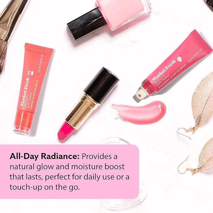 Peptide Glow Lip Serum Set by Market Fresh Beauty - Double Dose Hydrating Lip Care, Cherry & Strawberry Flavors, Vegan, Cruelty-Free, Clean Ingredients, 2 Pack